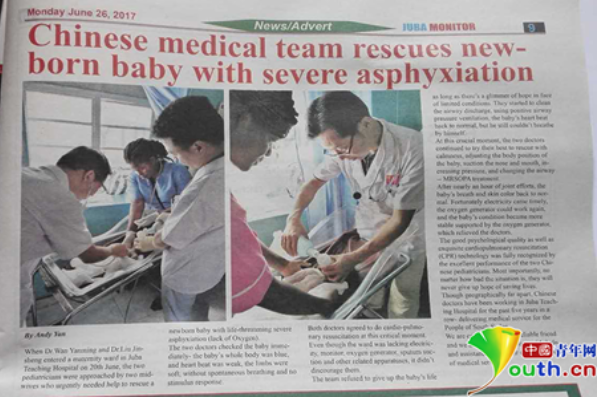 南苏丹当地媒体对中国援非医生的报道。中国(安徽)第五批援南苏丹医疗队供图
