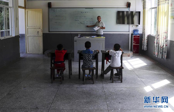 一张黑板,三张课桌,一个讲台,一根教鞭