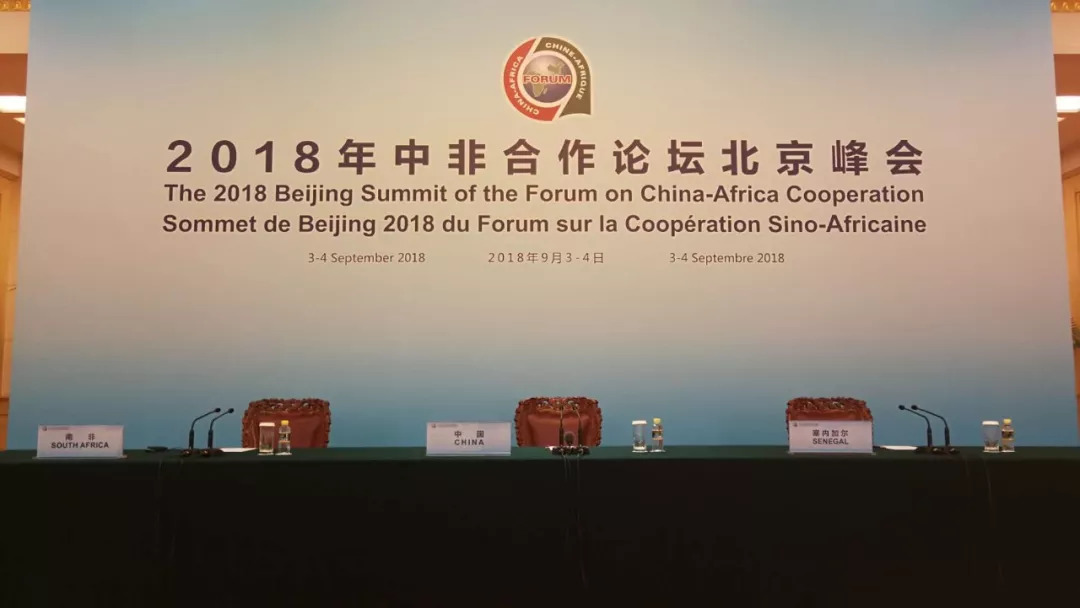 △记者会桌签显示,除了中国、南非,还会有塞内加尔领导人出席。(央视记者黄京辉拍摄)