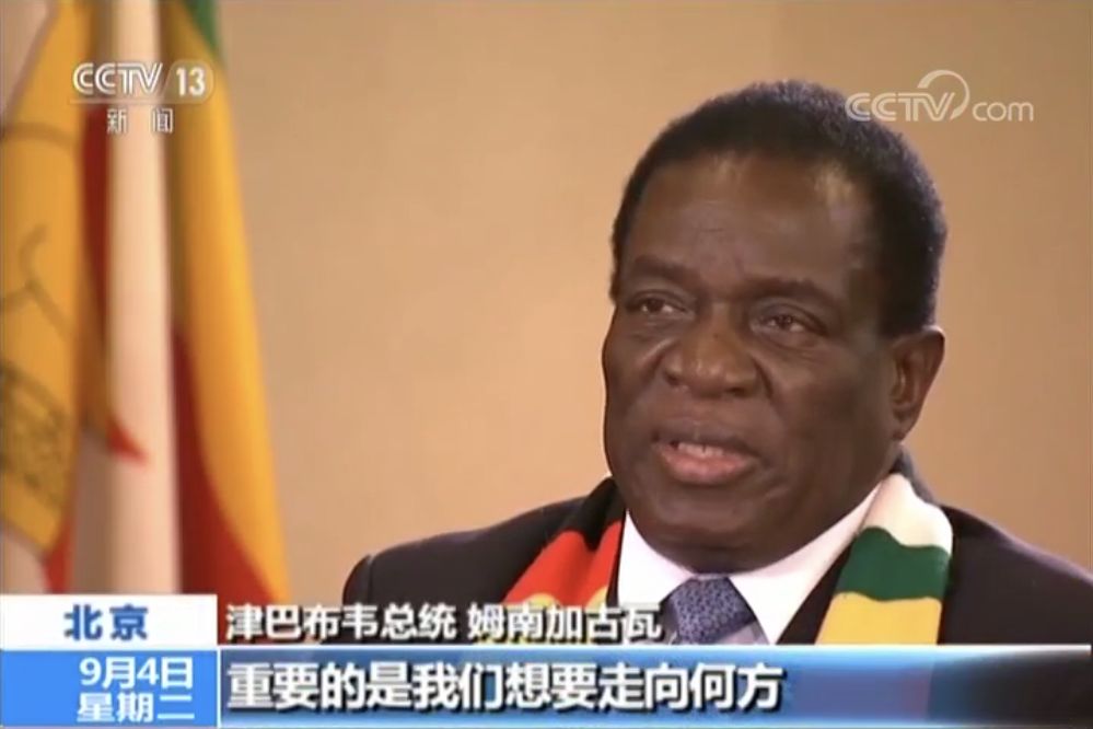 △津巴布韦总统姆南加古瓦说,“在全球化的愿景里,每个国家都占有一席之地。中非人民必须团结一致。”