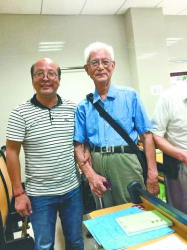 吴江涛(左)和最年长的学员——九十三岁的王明超
