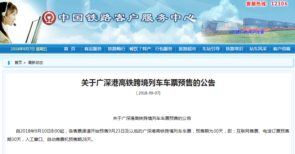 新华网北京9月7日电(韩家慧)记者从中国铁路总公司获悉,广深港高铁香港段将于9月23日正式运营,广深港高铁各次列车车票将于9月10日上午8时在内地和香港同步发售。