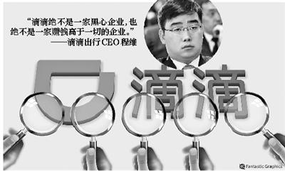 “滴滴绝不是一家黑心企业,也绝不是一家赚钱高于一切的企业。” ——滴滴出行CEO程维