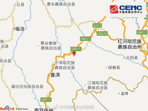 云南普洱发生4.0级地震 震源深度5公里(图)