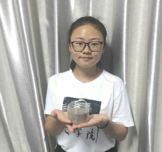 ▲党佳欣带来的一捧家乡的黄土 受访者供图