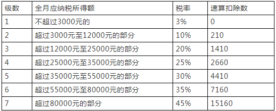 看看最新的工资薪金所得适用税率表: