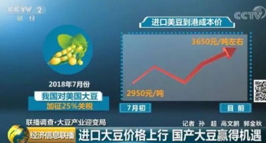 龙江福粮油工业集团有限公司董事长 宋胜斌:进口大豆成本提高了,对黑龙江是非常利好的,大豆价格高了而原料价格没有变,产品就能顺利的销售。