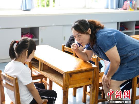9月10日,王静带领孩子们跟着音乐指令找到自己的身体部位,训练他们的认知能力。 谢耘 摄