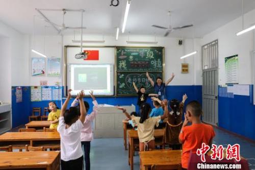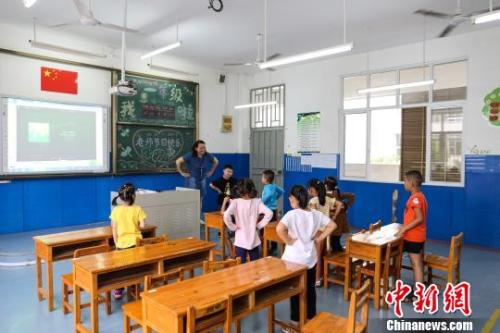 9月10日,王静正在给孩子上课。 谢耘 摄
