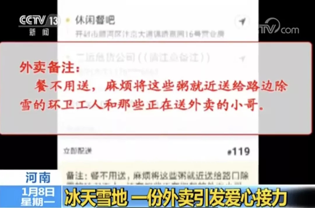 你为他人义务扫雪 我为你们送份外卖