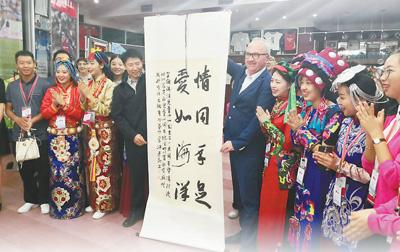 9月9日,四川青少年赴俄交流团向“海洋”全俄儿童中心赠送书法作品,表达中俄友好情谊。本报记者 杜尚泽摄