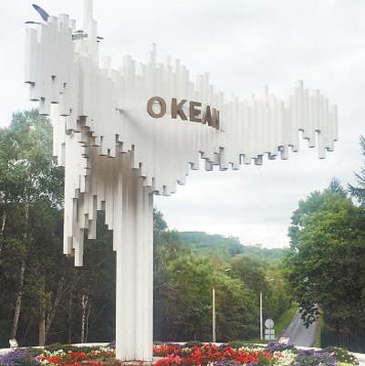 “海洋”全俄儿童中心门前带有俄文“海洋”的标志。本报记者 吴 焰摄
