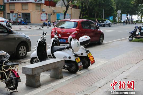 三亚街头仍停放有供人租赁的电动车。 王晓斌 摄