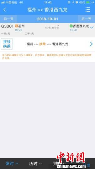 10月1日福州赴港车票已被抢光,热度可见一斑。截图