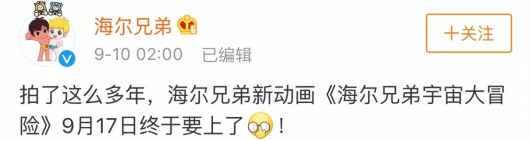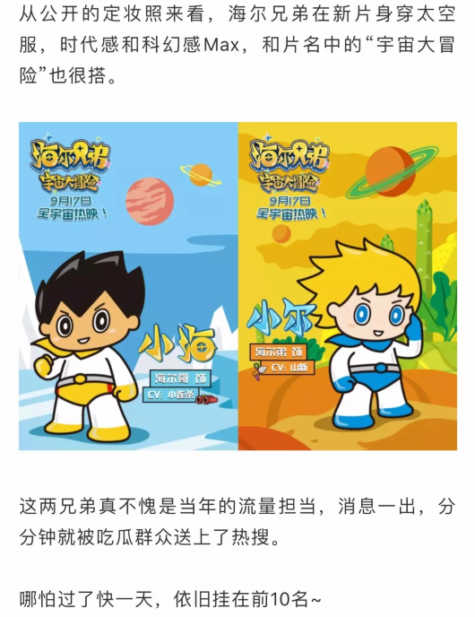 海尔兄弟官宣新动画《海尔兄弟宇宙大冒险》将在9月17日开播。