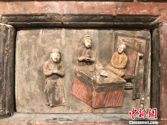 晋城金代砖雕墓是首次在公众面前亮相,该墓建于金大定十五年(1175),前、后墓室均采用砖雕加彩绘的装饰手法,其中孝子故事、妇人启门等砖雕艺术价值颇高。