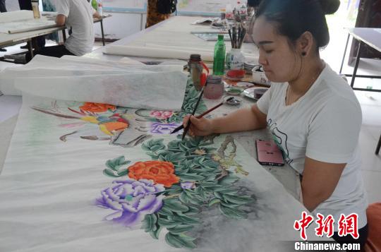 山东省美术家协会会员、菏泽市牡丹画院副院长徐凤秋介绍说,2018年以来,巨野县鲁西书画院采用“非遗+就业工坊”培训基地的模式,采取邀请专业美院教师教学、专家指导以及有一定画龄的老学员帮带的方式,优先吸纳贫困户家庭成员免费培训,助力脱贫。“农民免费培训半年可以自我创作后,每月工资基本可达到3000-4000元。”