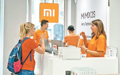 在巴黎的小米授权店内,当地顾客正在购买小米品牌手机。本报记者 龚 鸣摄
