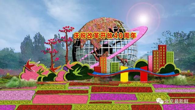 ▲建国门西北角花坛的主题为“春的华章”。花坛以深圳地标(市民中心)、燕子及地球为主景,展现了改革开放40周年的辉煌成就及美好蓝图。