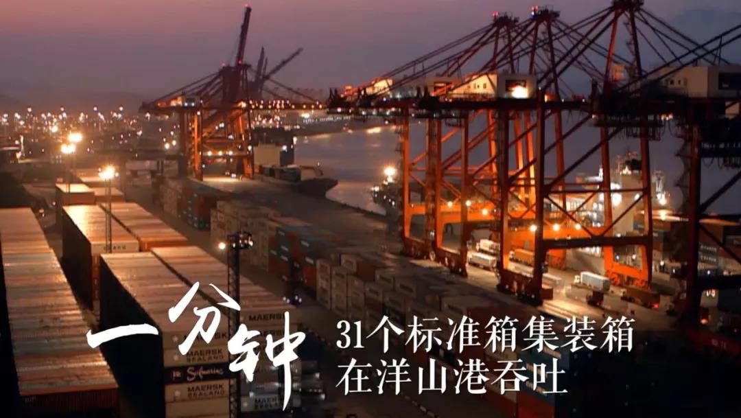 一分钟,31个标准箱集装箱在洋山港吞吐