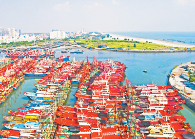 9月15日,数百艘渔船回到广西北海市电建渔港内停泊避风。李君光摄(人民视觉)