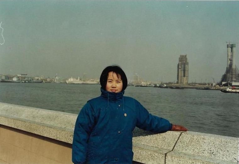 “我是‘小肥阳’,这是我14岁时的照片,那是1993年初。我家住在外滩附近,父亲一直在浦东工作。后来浦东要开发,黄浦江上要造大桥,我家新房子就在南浦大桥下面,我很自豪,在作文里写了很多次浦东和南浦大桥,那时对于班上同学来说还是新鲜事。小时候很长一段时间从外滩看对面都是空的,只是看船看水,听说那里要开通新路,要造楼房,就特别期待。每次去外滩,父亲都特别留意对面有没有新的楼房起来。这张照片背后就是正在建设中的东方明珠。”
