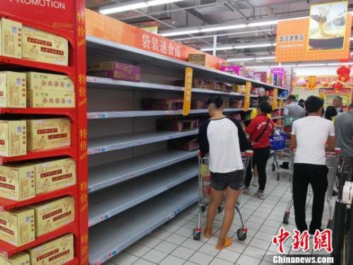 资料图:超市的方便面货架被一扫而空 翟李强 摄