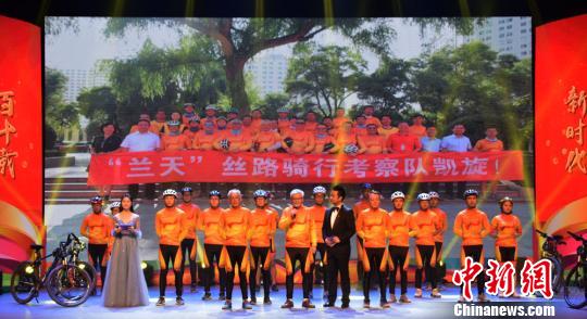 图为“兰天”丝路骑行考察队讲述新时代兰大人奋斗丝路征程的故事。 曹含笑 摄