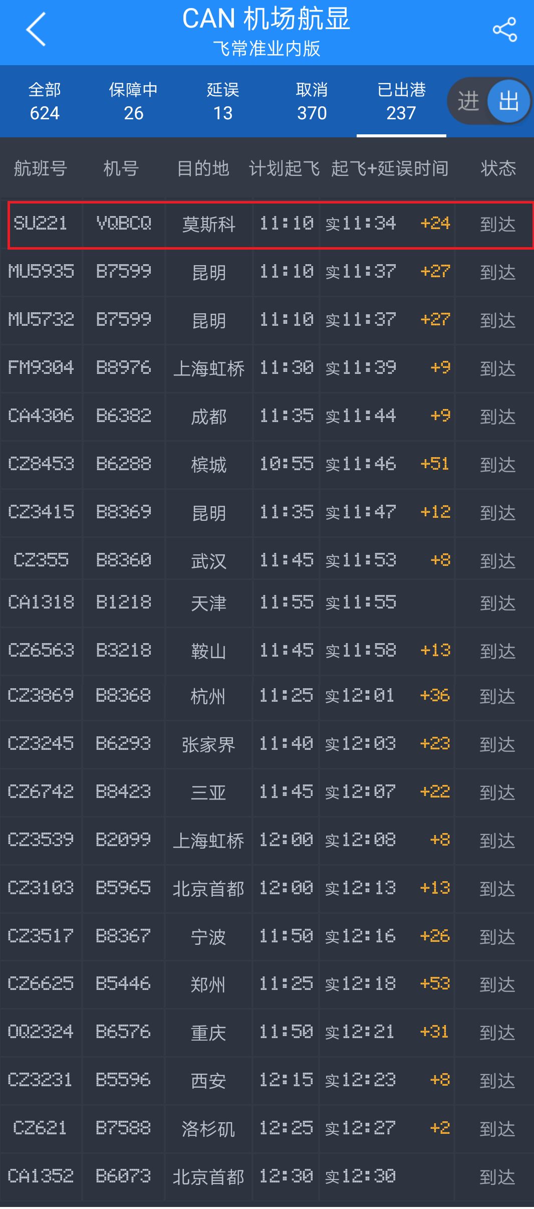也就是说,在俄航SU221航班起飞后,中国国内航空公司的20个航班也顶着“山竹”相继“逆风飞扬”。其中,国航的2个航班完全正点起飞,9个航班延误不到15分钟,延误最久的也没超过1小时。