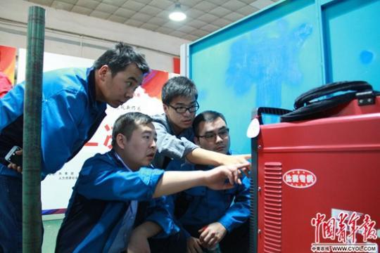 比赛前,选手们去赛场熟悉场地,几位选手正在研究比赛的机器。中国青年报·中青在线见习记者 温维娜/摄