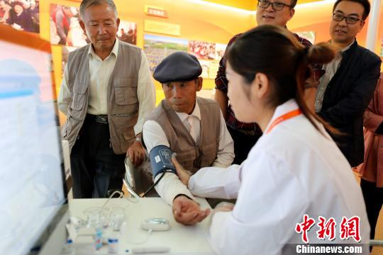 观众在基础设施建设展体验互联网+医疗就诊。 李佩珊 摄
