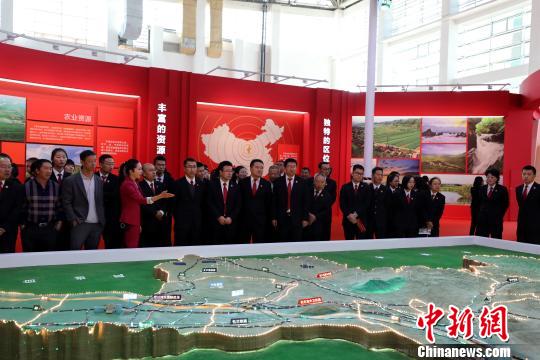 观众在反映宁夏基本概况的综合沙盘前聆听讲解。 李佩珊 摄