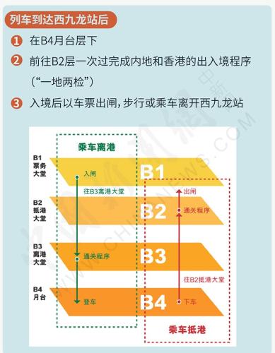 西九龙站通关流程。图片来源:中新网。制图:张舰元、文字:李金磊。