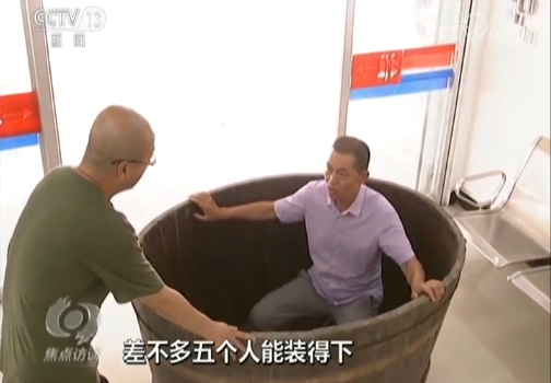 莆田市城厢区肖厝村 谢金坤:我们那个时候每家每户都有这个木桶,腌咸菜的,遇到水灾的时候,也可以当做逃灾的工具,就是老人孩子都坐进来,差不多五个人能装得下,年轻人蹚着水把它给推着走。