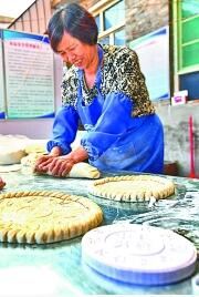 山西省晋城市泽州县南岭乡段河村村民段金花在制作月饼。新华社记者 曹阳摄