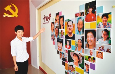 张庄村曾是河南兰考县最大的风口,沙丘遍布,贫困凋敝。跨越两个世纪,如今贫困面貌得以彻底改观。乡亲们说:“焦裕禄带咱治了沙,习总书记领咱脱了贫!” 图为讲解员在张庄村村委会为来访者介绍“村民笑脸墙”。新华社记者 冯大鹏摄