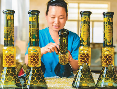 图为河北省阜城县生产的工艺玻璃制品,产品远销德国、法国等16个国家和地区。新华社记者 李晓果摄