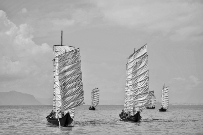 近日,云南高原湖泊滇池进入开湖捕捞季。图为9月23日,渔船在滇池上行进。新华社记者 胡超摄