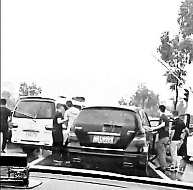 监控拍下执行法官在路口逼停老赖的奔驰车
