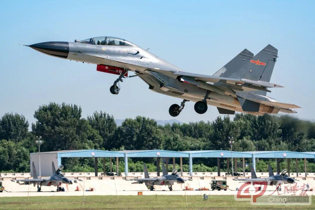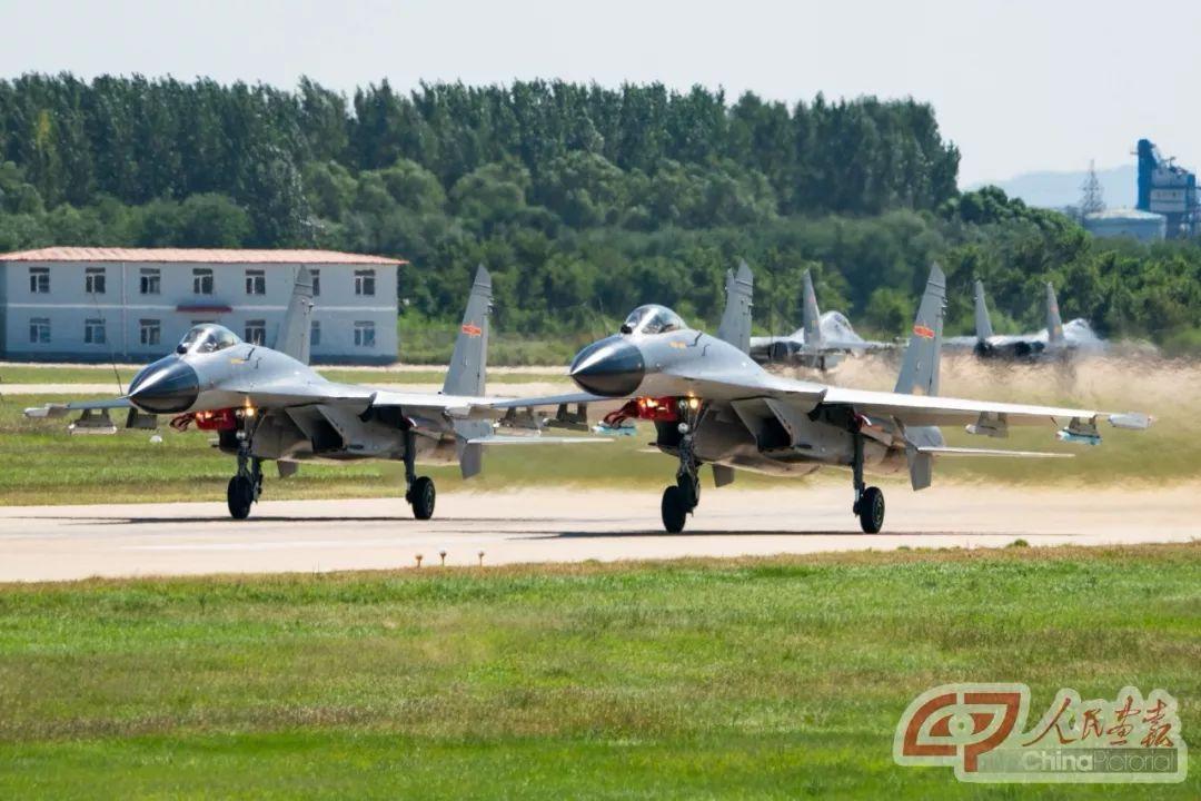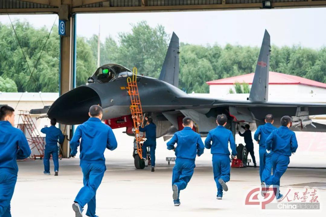 警报突鸣,战斗等级转进!飞行员与机务扑向战机,数分钟间,先锋飞行大队的歼-11B战机就滑行进入起飞线,双机编队加力起飞。