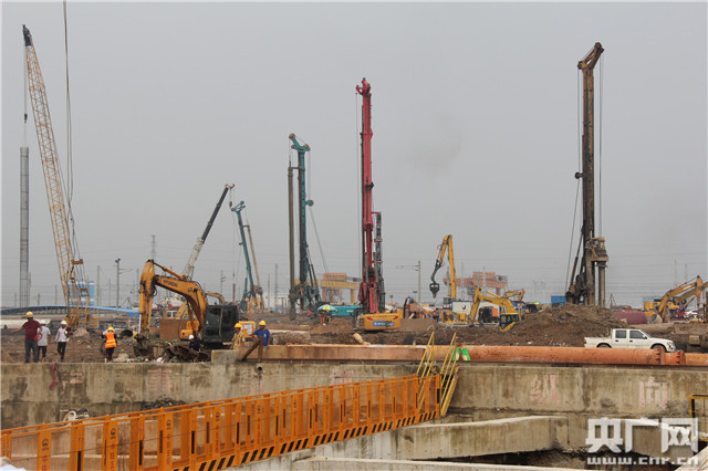 27日,珠西综合交通枢纽江门站施工现场。(央广网记者巩盼东 摄)