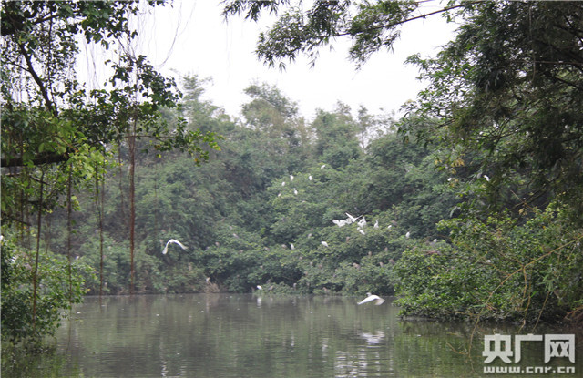 在“小鸟天堂”,栖息着夜鹭、池鹭和小白鹭等40多种鸟类。(央广网记者巩盼东 摄)