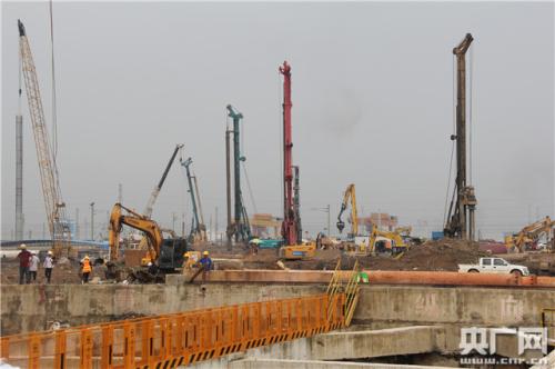 27日,珠西综合交通枢纽江门站施工现场。(央广网记者巩盼东 摄)