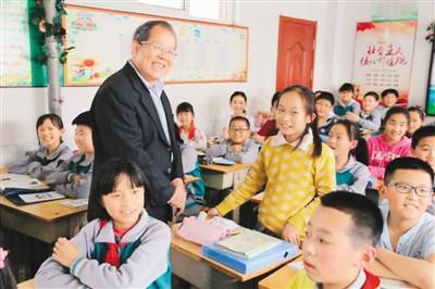 今年4月,本文作者在山东胶州向阳小学访问时,与少年国学班的学生们在一起。