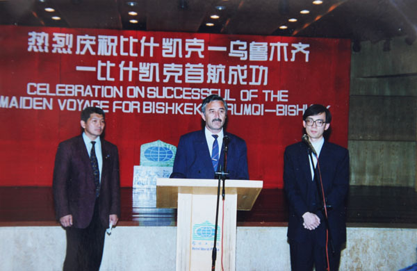 1997年4月15日,比什凯-首航成功仪式在环球大酒店举行