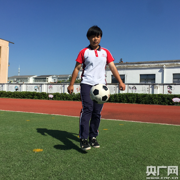 这位地地道道的小岗女孩儿心中有着自己的小小足球梦,刚刚加入校女子足球队不到半年时间,就和同学们一起获得了凤阳县举办的校园足球比赛二等奖。“因为自己喜欢足球,所以升入初中后就报名参加了校足球队,每天利用课余时间都会和同学们一起训练足球,学习之余还能锻炼身体。”