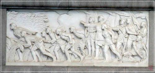 浮雕共刻有170多个人物形象,连环画般概括了中国人民百年来反帝反封建的革命斗争史。