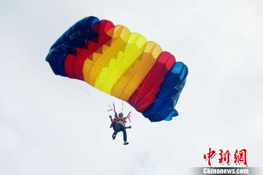 石春艳成功挑战200米超低空定点跳伞。邓道理 摄