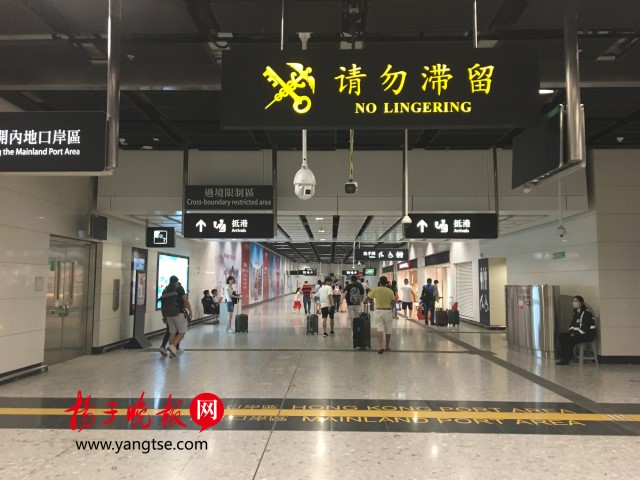 香港西九龙站实行“同层两检”。跨过这一条黄线就来到了香港口岸区。记者在进入香港入境待检区域后,首先看到有三处设置体温检查的柜台。再往里走,即是香港居民入境通道。一排闸机依次排开,港澳通行证放上即可通过。不过首次来港的旅客需要从人工柜台入关。记者到达时,办理香港入境程序的人较少,整个用时不到2分钟,就完成办理了入境程序。而在完成香港入境程序后,即可到检票闸机处刷票出闸。从下车到入关,记者一共花了约15分钟。“现在正是小长假,如果没有坐高铁而是选择从福田口岸过关,1个小时都搞不定。”一位福田游客告诉记者。