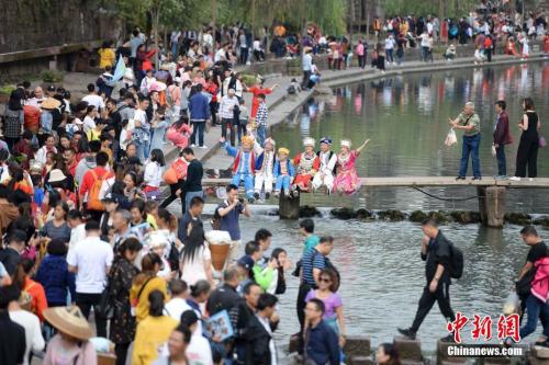 2018年国庆期间,大量游客在景区参观。中新社记者 泱波 摄